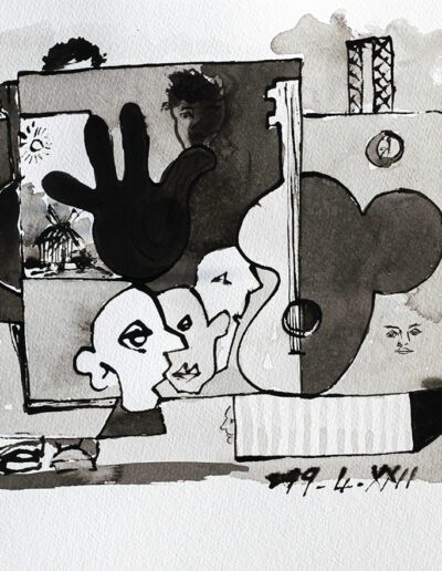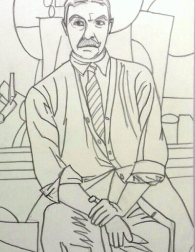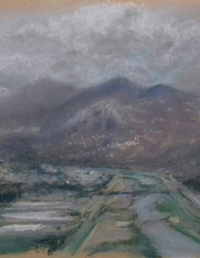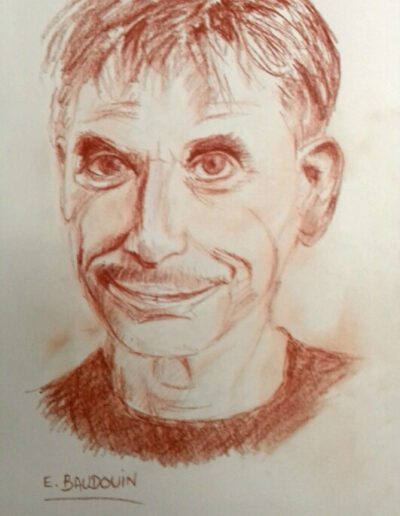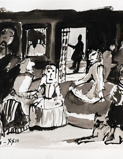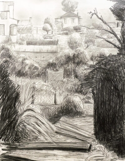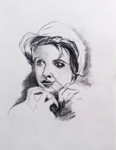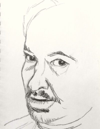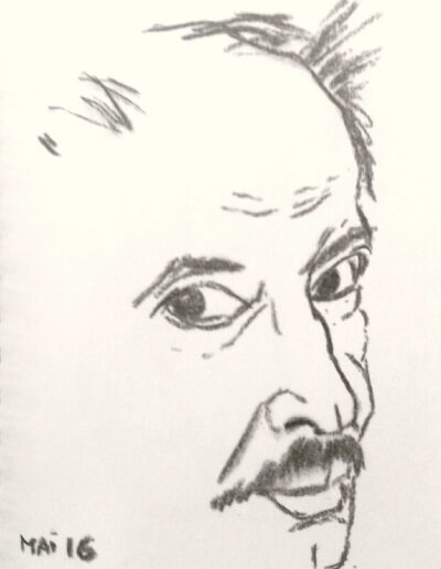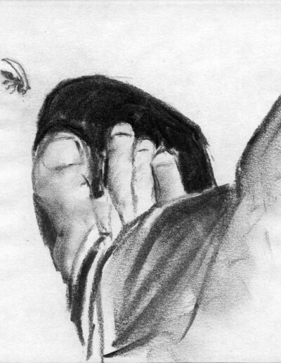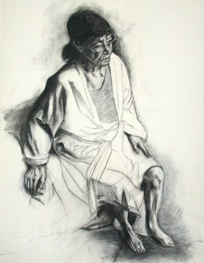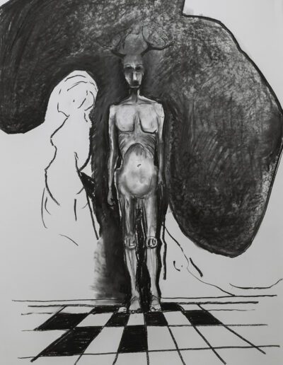 Pierre noire et craie blanche sur papier brun. 50×70 cm. 2024