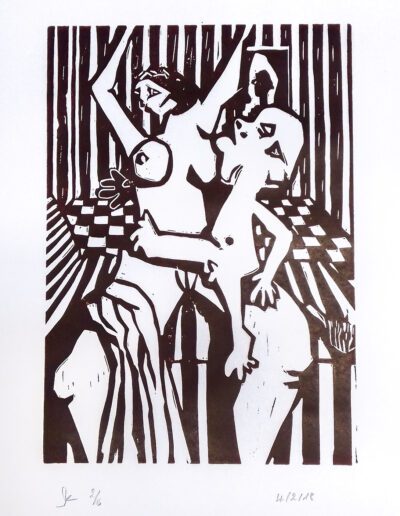 Taille d’épargne sur bois. 45×60 cm. 2024